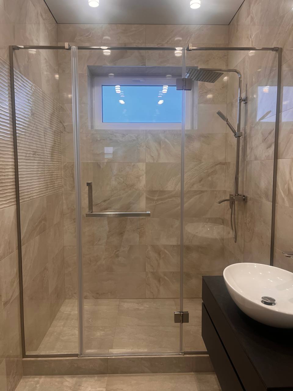 Мы предоставляем услуги проведения замеров, доставки и установки душевых кабин, а также изготавливаем стеклянные перегородки на заказ.